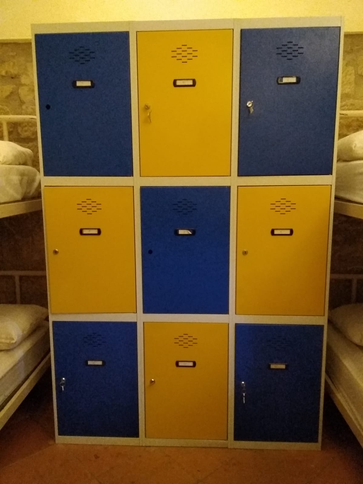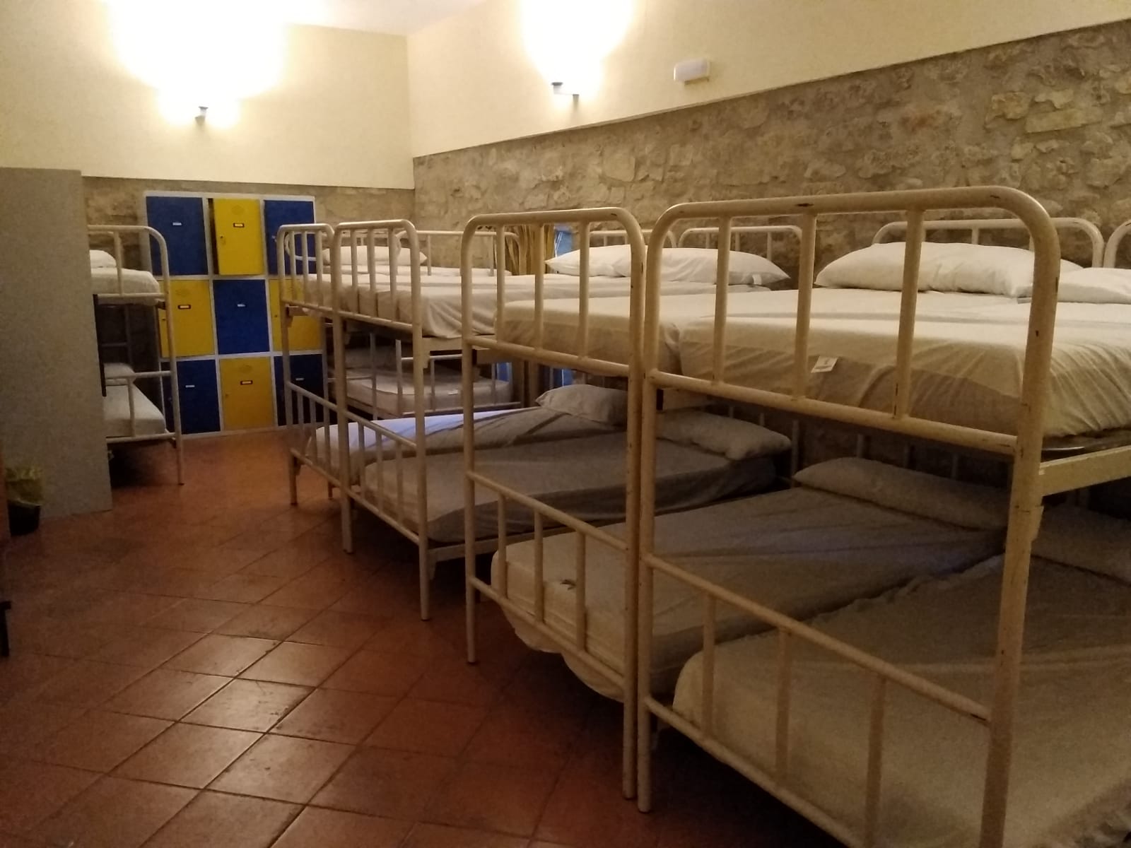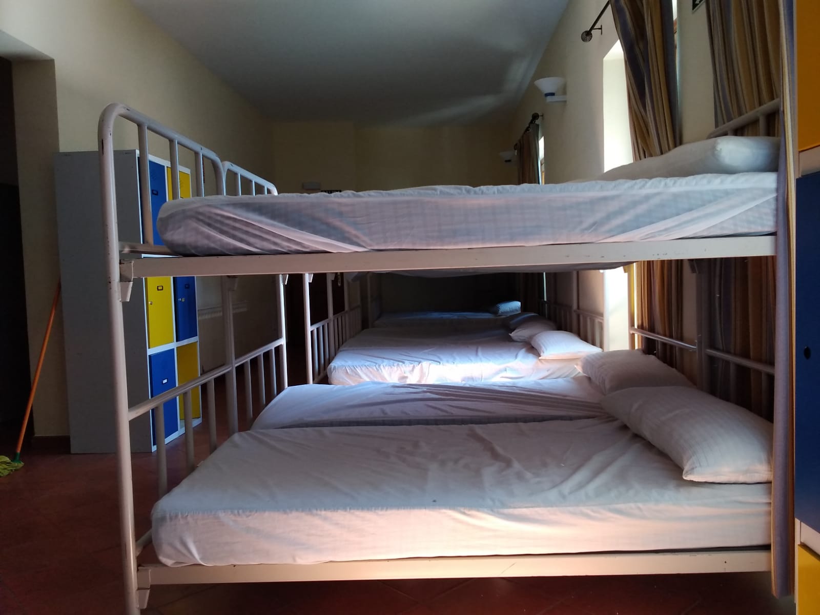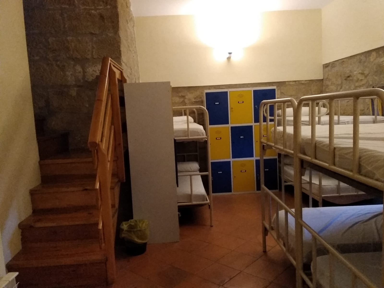 En esta habitación dispones de 8 plazas en literas y taquillas, los baños están fuera de la habitación, en un bloque de tres aseos, tres lavabos y tres duchas. Sólo se comparten con otra habitación, formando entre ambas una zona independiente de 18 plazas con baños.