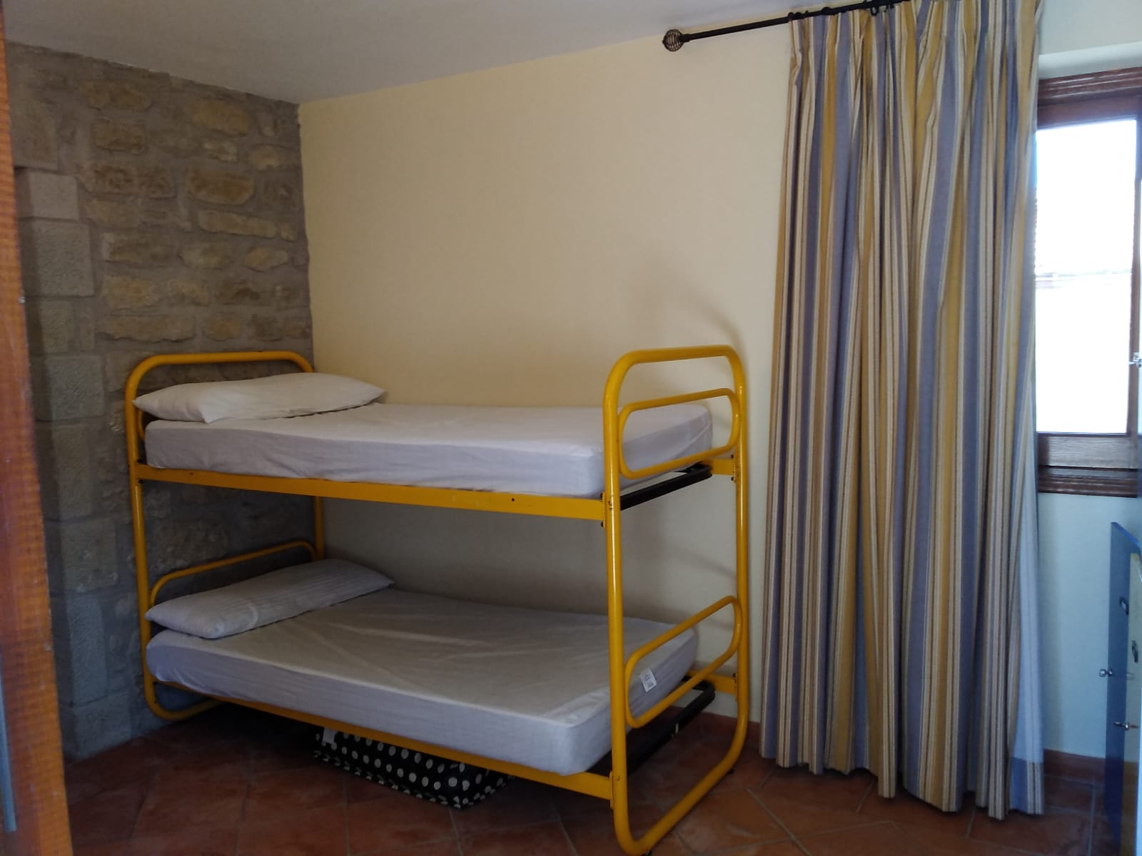Esta habitación se encuentra en la zona nueva, a pie de calle y está adaptada para personas con movilidad reducida. Dispone de 4 plazas en litera y baño adaptado.